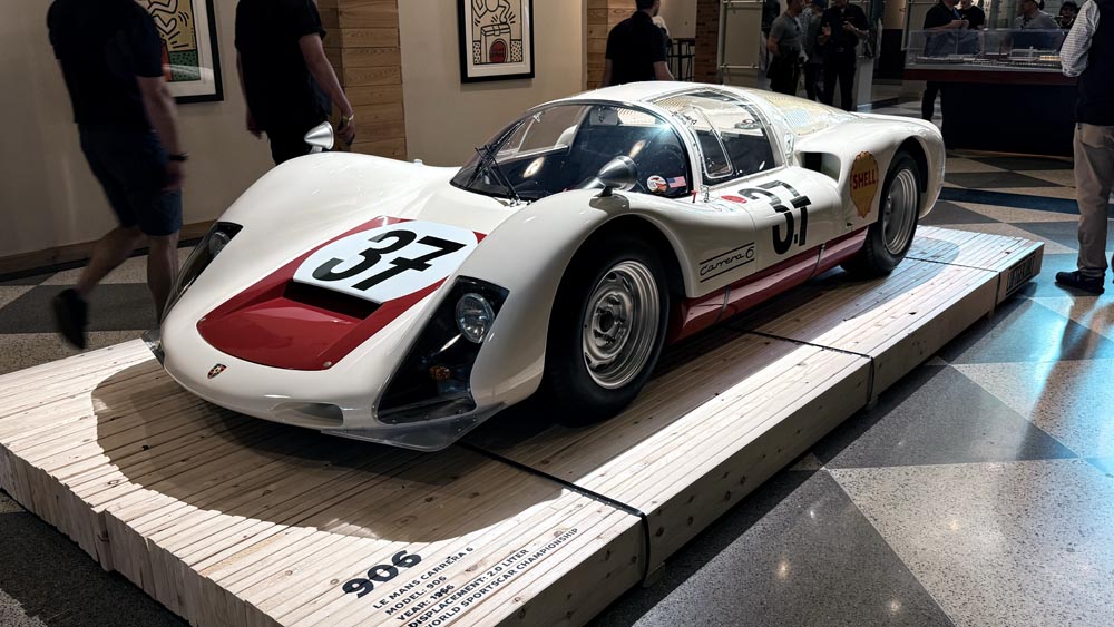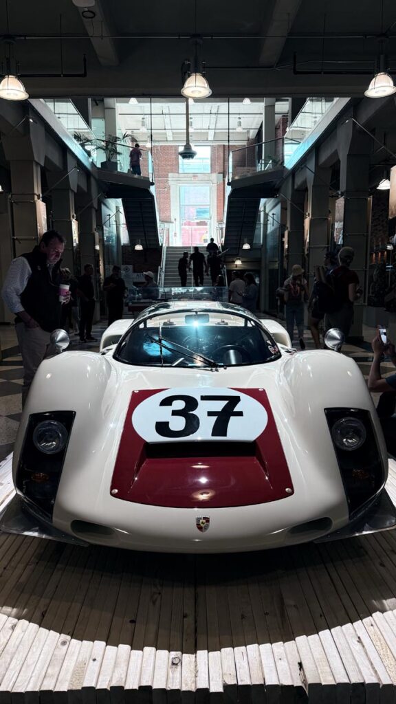 Right after, the stage shifted from filmmaker to racer as Bobby Rahal shared tales from the golden era of motorsport. His calm, understated delivery contrasted perfectly with the thunderous memories he described—how Porsche’s engineering precision shaped the way he raced and thought. Behind him sat his personal 904 Carrera GTS, its silver curves glinting under warehouse lights. The crowd hung on every word; it was a masterclass in storytelling through both metal and memory.